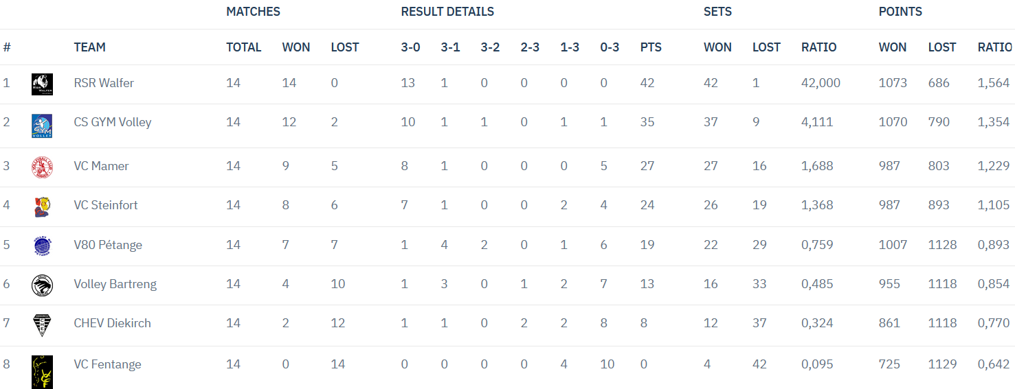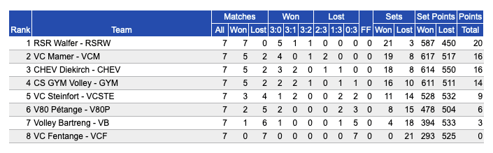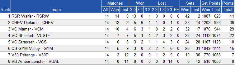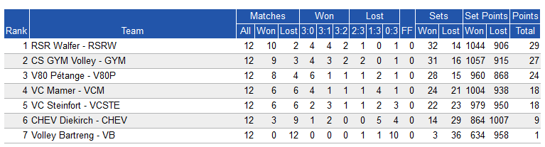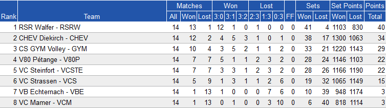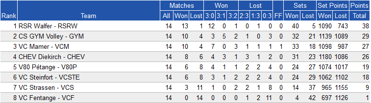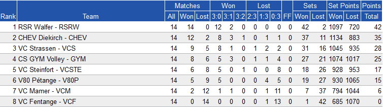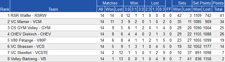 VCSTE Dames 1 | 14 | 4 | 10 | 12 |